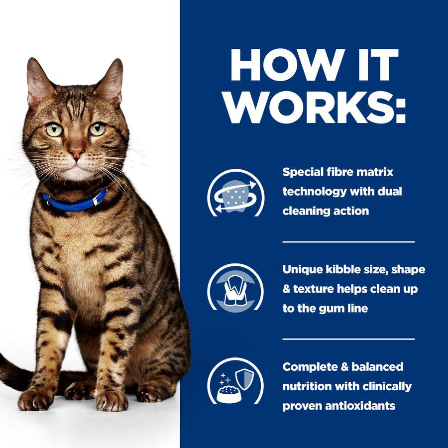 - Promotes Dental Health: Designed with a unique kibble texture to gently scrub the surface of teeth and combat plaque and tartar as your cat chews.