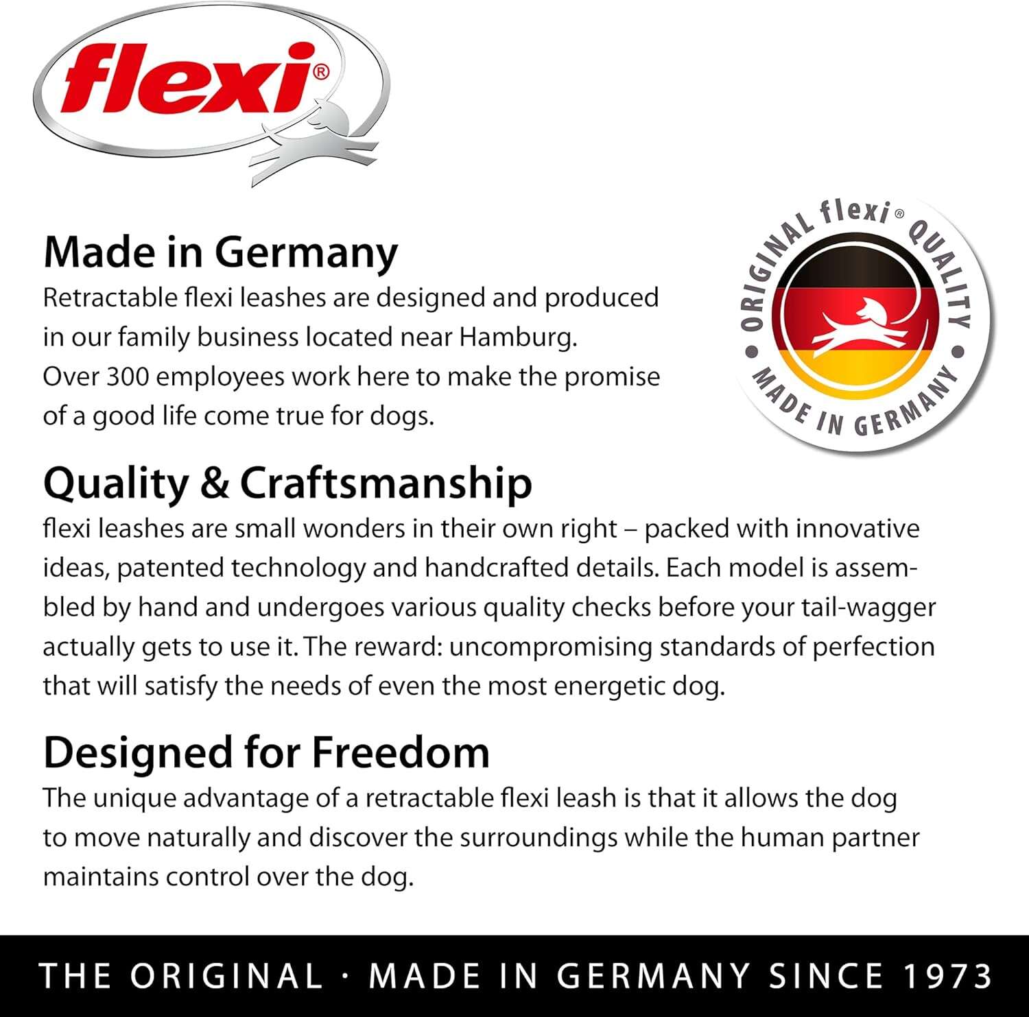 Is compatible with the LED Lighting System and the Multibox Accessory (each sold separately). Flexi leads never slacken, as the lead is always subject to sufficient tension and as the animal walks closer, the lead retracts into the handle. With the help of the integrated braking system, the dog is always under control and the length can be adjusted and locked in place if required with the locking button.