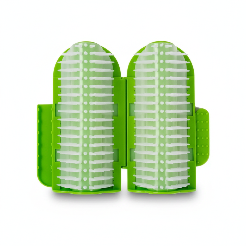 Monitor use and clean bristles periodically: remove trapped fur, wipe surface with damp cloth if possible.
